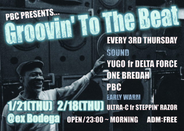 福富町はEX BODEGAにて毎月第三木曜日に開催されている【GROOVIN' TO THE BEAT】は、横浜のアナログ好きな若手SOUNDによって行われるRECORD ONLYのFOUNDATION DANCE♪