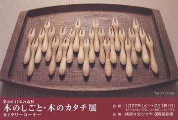 横浜タカシマヤでの催しにki-to-teも参加(出品)します。 お近くの皆さん、またお近くに行かれるご予定の皆さん、 お時間がありましたら是非お立ち寄り下さい。 第2回「木のしごと・木のカタチ」展 期間:1月27日(水)〜2月1日(月) 場所:横浜タカシマヤ 8階 催会場 ※連日午後8時まで、最終日は5時にて閉場。 〒220-8601 横浜市西区南幸1丁目6番31号 http://www.takashimaya.co.jp/yokohama/index.html ※DMの写真は、参加者のTANBANANBAさんのもの。