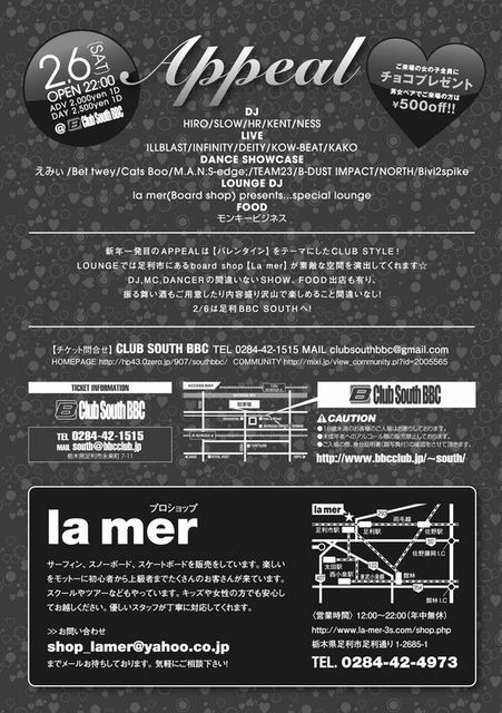CHARGE: ADV¥3000(1D) / WITH FLYER¥3500(1D) / DAY¥3500