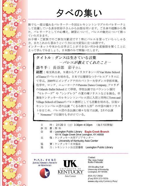 Æü»þ¡¡¡¡¡¡¡¡¡¡¡¡¡¡2·î26Æü¡¡¡Ê¶â¡Ë¡¡5;00PM-7.00PM¡Ê2»þ´Ö¡Ë