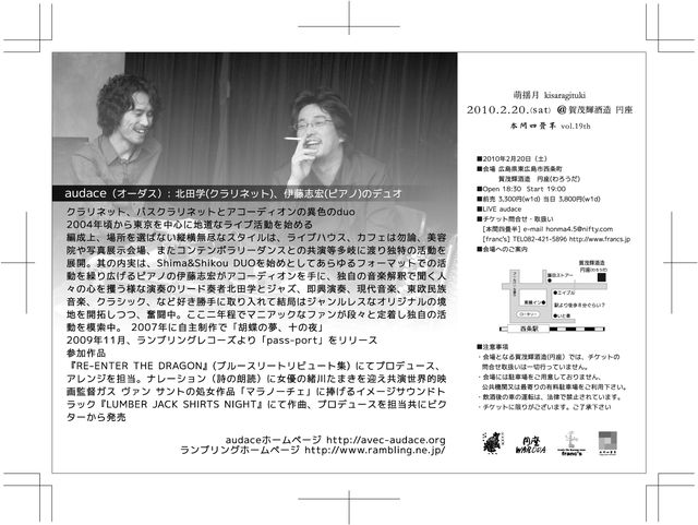 入場券:3000円 共に1ドリンクオーダーお願いします。
