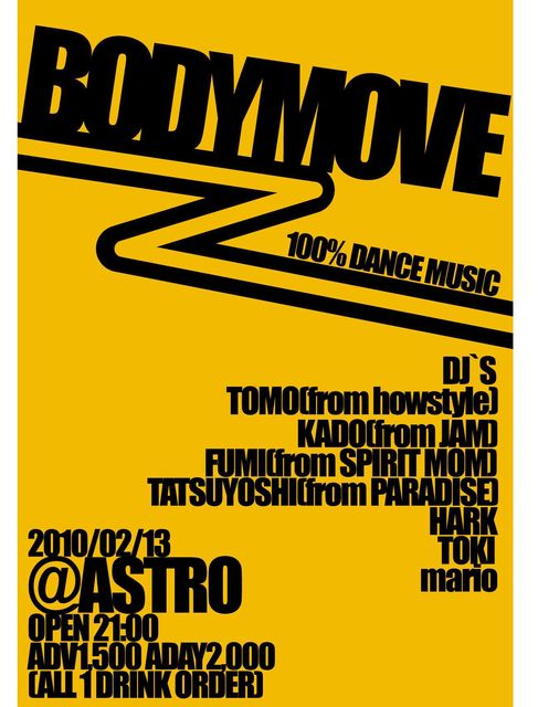 ヒロシマハウスDJから多方面で活躍中のクラブDJが集うハウスパ-ティ-「BODY MOVE」が不定期でのクラブスタ―