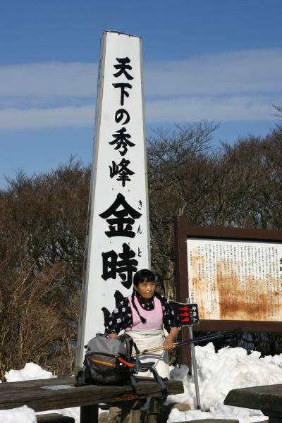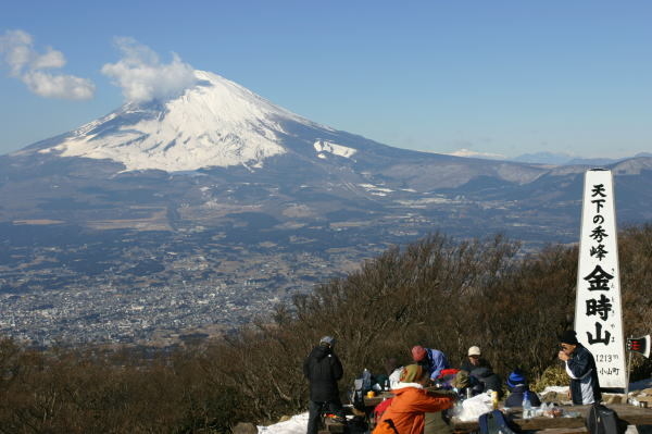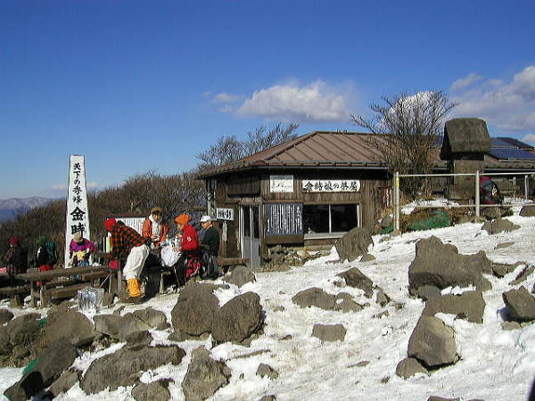 第4回山行案内 「あの金時娘に逢って、箱根の温泉に浸かって!」 期 日 2月9日(火)平日な日 集 合 新宿駅西口ロータリー8時00分発特急箱根行きバス内指定席 コース 新宿=乙女峠入口〜金時山〜千石原=箱根湯元駅=天山=箱根湯元駅=小田急新宿駅 歩 程 約3時間、上り1時間30分下り1時間20分 金太郎伝説で有名なあの金時山へ登ります。 短い歩程ではありますが、たいへん変化に富む面白いコースであります。 加えてあの伝説の金時娘(推定70歳・写真中央)が作る具沢山の味噌汁を