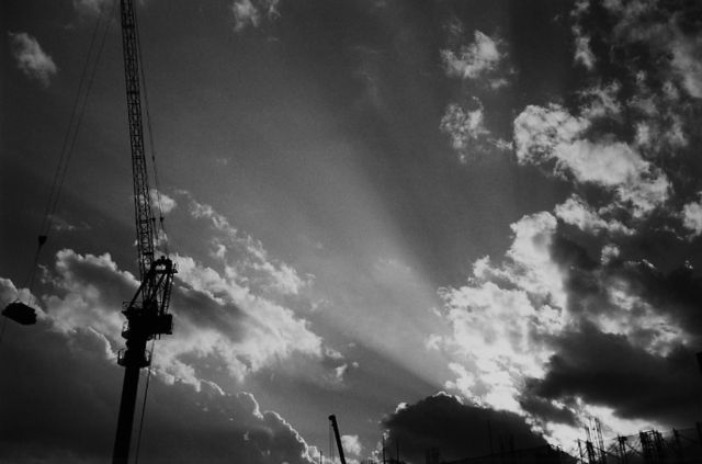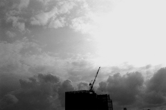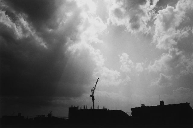 首都圏でのマンション建設ラッシュは、見上げる空に「クレーン」をもたらした。まるで経済発展を誇示するように空に向かって高く、高く地上から伸びてゆくクレーン群。それらが遮るのはこれから幾重にも重ねられ高層化する構造体によって満たされ私達の視