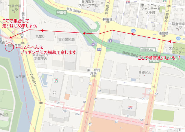 人数に達したため2月3日いっぱいで募集を締め切りました。ありがとうございます みなさんのおかげでとうとう2000人突破しました!ということでやっぱり走って飲み会やりますよ〜。 当日の予定 ・午後2時練習会開始。 集合場所:皇居 竹橋駅「和気清麻呂像」前(東京ジョギング部の旗を立てています。)写真参照 ・何人かのグループに分かれてペース走でもウォーキングでも皇居散策でも自由にやりましょう。 着替え場所:千代田区スポーツセンター http://www.ci