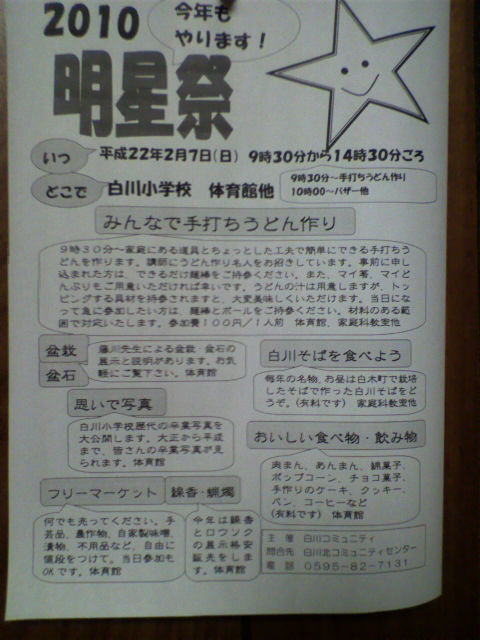 恒例となりました明星祭。 今年はうどん打ち体験が100円でできるらしいです。