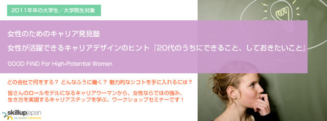 ◇◆◇◆◇--------------------------------------------------------------------------------◆ 女性が活躍できるキャリアデザインのヒント『20代のうちにできること、 しておきたいこと』 ◇--------------------------------------------------------------------------------◆◇◆◇◆ ◎20代、100名のメンバーを抱える事業部の副部長にまで昇進した若手キャリアウーマンが語る どの会社で何をする?どんなふうに働く?魅力的なシゴトを手に入れるには? 皆さんのロールモデルになるキャリアウーマンから、女性ならではの強み、生き