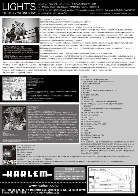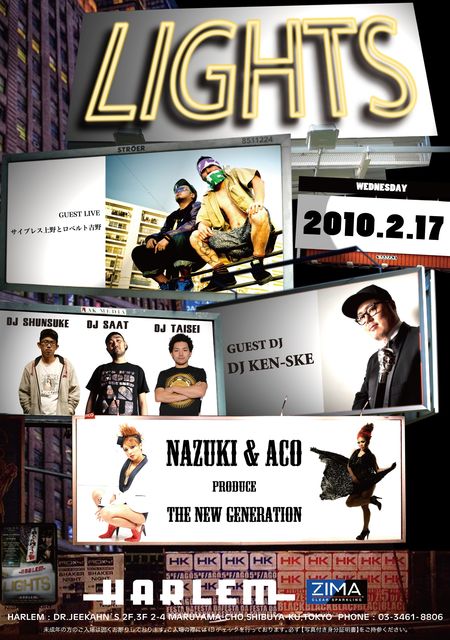 前回600人程のお客様で大盛況、大好評だったLIGHTSが帰ってきます!!! ご連絡頂ければゲストご用意致しますのでお気軽にメッセージ下さい☆ 2/17 (wed)『LIGHTS』@HARLEM GUEST DJ: KEN-SKE DJ: TAISEI/SAAT/SHUNSUKE/MANATO/PLATE/SHINTARO GUEST LIVE:サイプレス上野とロベルト吉野 GUEST DANCE: NAZUKI&AKO presents SPECIAL SHOWCASE DANCE: BANANA BOOOM PLAY BOYZ VJ:みるく&牛乳 MC:YAMACHI OPEN:2300 DOOR:2500/1d with flyer:2000/1d パーティーピーポーの皆さん、お待たせしました!!前回、満員