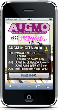 もちろん2010年もやりますよ〜! ■日時:2010年2月20日 (土) 12:00開場 12:30開始 (18:30頃終了予定) ■会場:大分県中小企業会館 6F 大ホール ■入場無料 (事前登録制・定員100名) 詳しくは公式サイトへ http://augm.onsenringo.org/