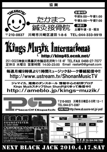 BLAC JACK vol.4 2010.2.20(SAT) @川崎O.T.B DOOR \1500 W/F \1000 GUEST SOUND SKY ACE GUEST DEEJAY ANSA MADKYU GOST SOUND SUPER HAZE JAMQUEST SANSI SOUND with s/s BIG BASS ANY-JAH FLOOR DANCER DELIGHTS MISAKI fr Betty'SM ERI