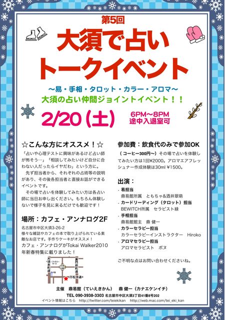 開催場所未定 (名古屋市中区大須3-26-2 カフェ・アンナログ2F)