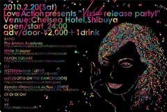 管理人様、コミュニティの皆様 いつもお世話になっております 告知失礼いたします 2月3日 めでたく1st Album“Vivid”の発売日を迎えました The Brixton Academyから、Release Partyのお知らせです! 2010.2.20(Sat) Love Action presents "Vivid release party!" Venue:Chelsea Hotel,Shibuya open/start 24:00 adv/door-\2,000+1drink BAND The Brixton Academy http://www.myspace.com/thebrixtonacademy White Scooper http://www.myspace.com/whitescooper FARON SQUARE http://www.myspace.c