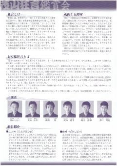 名水「広島の水」探訪(2010年、区民アカデミー講座後期) 1回 日時:2月14日10:00~12:00 テーマ:日本の名水、広島の名水を巡る〜全国名水百選から〜 講師:名水フリーライター、錦川鯉 2回 日時:2月21日10:00~12:00 テーマ:名水あるところに名酒あり〜西条酒郷地区の水〜 講師:東広島市観光協会広報委員長、木村浩男(ペンネーム、松木津々二)、名水フリーライター、錦川鯉 3回 日時:2月28日10:00~12:00 テーマ:原爆献水にかける思い〜ヒロシマのいのちの水〜 講師:広島市原爆慰