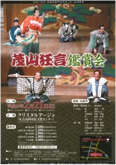 【茂山狂言鑑賞会】 2010年2月21日(日) 14時 開演 クリスタルアージョ・ホール(安芸高田市民文化センター) 広島県安芸高田市吉田町吉田791 TEL.0826-42-2411 http://www.akitakata.jp/site/page/kyouiku/bunka_sports/sigeyama/ ◆解説 -茂山狂言- 茂山逸平 ◆狂言「二人袴」 聟:茂山茂 舅:茂山七五三 太郎冠者:島田洋海 兄:茂山正邦 ◆狂言「棒縛」 次郎冠者:茂山逸平 主人:島田洋海 太郎冠者:茂山七五三 ※入場券 一般指定席2,500円(前売り券のみ) 高校生以下指定