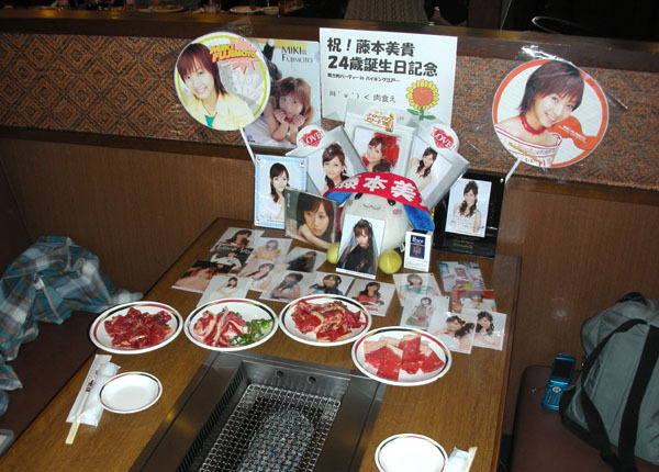 もう4年目になるミキティの誕生日を祝うイベント、 今年も懲りずに焼肉食べ放題です。 場所は倉敷インターから少し南に行ったところにある 「バイキング江戸一」倉敷店 http://edo-ichi.jp/shoplist/6/kurashiki.html 集合時間は13時30分頃 フルバイキング 90分 1980円(ドリンクバー200円) ※当日はラフな格好で参加していただければ十分です、 変な格好をしてくる必要はありません(汗 またイベント後には、まこぴー邸にてDVD鑑賞や ゲームの計画もありますので、暇な方はそのまま同行よろしく! その場合は、