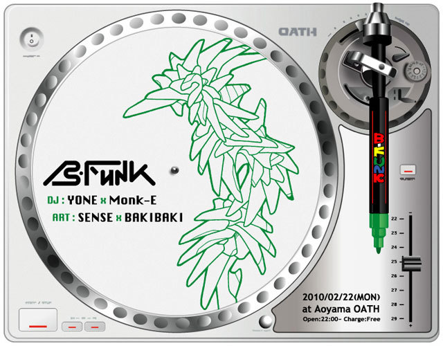 ペインター"BAKIBAKI"とDJ"Monk-E"をホストに、各方面から交友関係のあるゲストを招き、2ペインターx2DJスタイルで偶数月第四月曜日、青山OATHにて夜な夜な開催されてきた"B-Funk"。