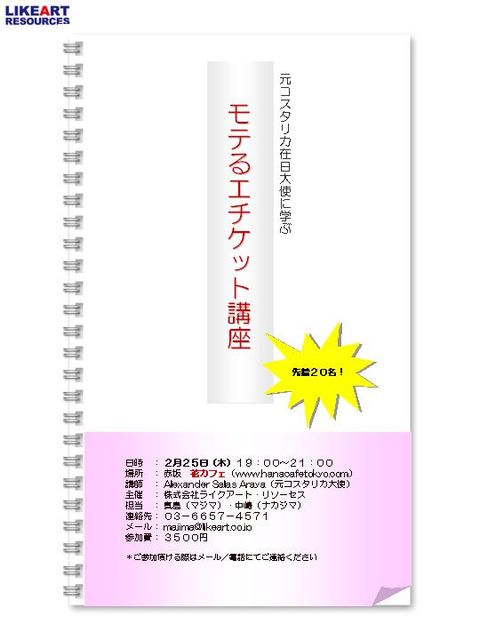 open 19:30 start 20:00 Charge \3,000 + 1drink