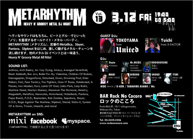 渋谷のロックバー「ロックのこころ」のレギュラーパーティ、METARHYTHM!