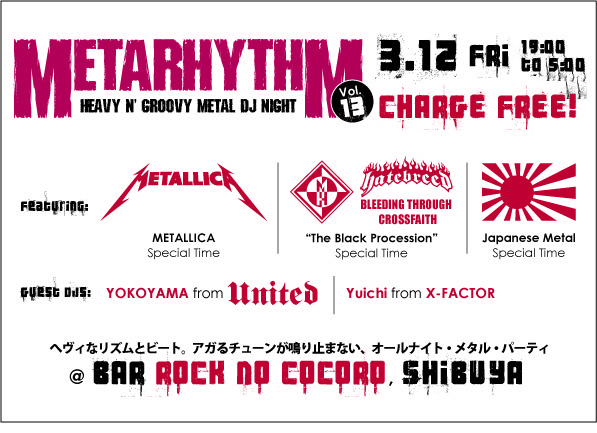 METARHYTHMは、へヴィなサウンドはもちろん、ビートとグル―ヴといった「ノリ」を重視するオールナイト・メタル・パーティです。
