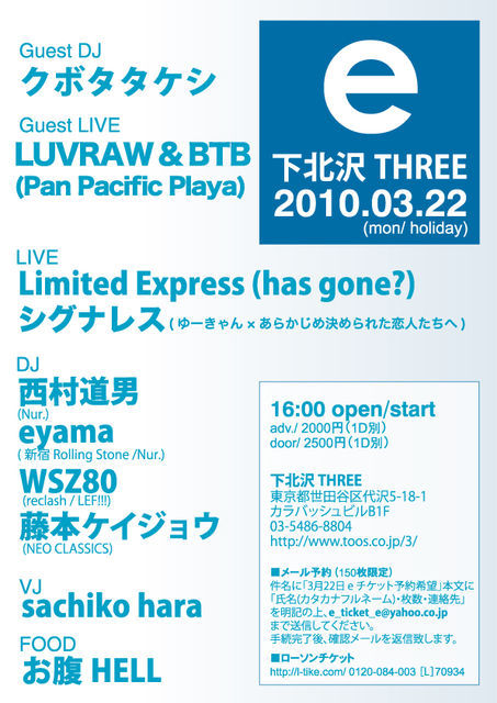 OPEN : 22:00 DOOR 2500yen/1d w/
