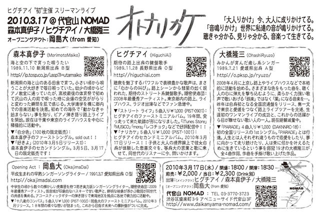 ¥2,500w1d(ADV) ¥3,000w1d(DOOR)