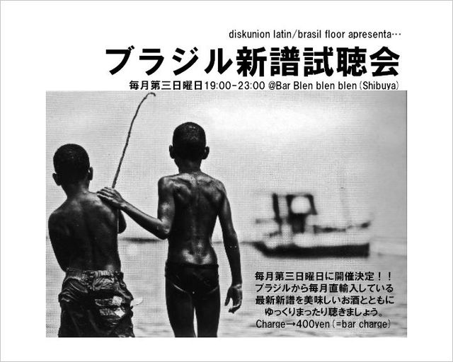 管理人様 告知失礼いたします。不適切な場合、削除願います。 * * * 毎月ブラジルから直輸入しているブラジル新譜を 美味しいお酒と共にまったり鑑賞する毎月第三日曜日恒例の... diskunion apresenta ブラジル新譜試聴会@渋谷Bar Blen blen blen http://blog-shinjuku-latin.diskunion.net/Entry/985/ 前回はおかげさまで満席になるなど大盛況で終わりました。 来てくれた方々には、心より御礼申し上げます。 * * * さて次回3/21(日)のゲストDJは J-WAVE SAUDE! SAUDADEなどでも御馴染み、中原仁さんです。