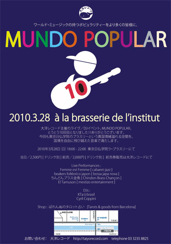 大洋レコード主催イベント【MUNDO POPULAR】もおかげさまで10回目を迎えます。 どうもありがとうございます!