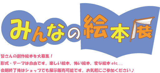 皆さんの創作絵本を大募集 形式・テーマは自由です。楽しい絵本、怖い絵本、変な絵本etc... 会期終了後はショップでも展示販売可能です。お気軽にご参加ください 【会期】 2010年3月2日(火)〜7日(日) 11:00〜20:00(最終日18:00まで) 【展示会場】 下北沢GAoh! B1ギャラリー 〒155-0032 東京都世田谷区代沢5-35-7 TEL/FAX: 03-5787-6747 Mail:info@gaoh.jp URL:http://gaoh.jp 【募集人数】 20名前後(複数口応募可) ※最少開催人数:5名 【出展料】 6500円(税込) その他詳細