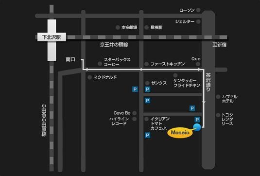 下北沢南口商店街、ミスタードーナツを右折。DISC SHOP ZEROのちょっと先、麻というレストランのあるビルの地下です。