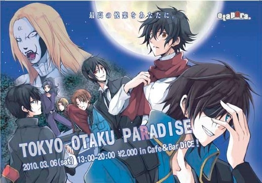 1年ぶりのご無沙汰です。 アニソンクラブイベント、TOKYO OTAKU PARADISE が帰ってきます!! 第4回開催は、2010年3月6日(土)に開催決定! 今回こちらの mixiコミュから「参加する」申し込みをして下さった方は 1ドリンクフリーのキャンペーン中です。 ぜひぜひ参加お申し込み下さい! JR秋葉原駅から歩いて3分という良い立地の会場で、 3月の昼下がり、アニソン大好きなみんなのために 昼の13時から夕方まで、クラブでDJがノンストップで アニソンを流し続けてしまうイベントです! アニメソングが好きな人、 思いっきりアニソンで