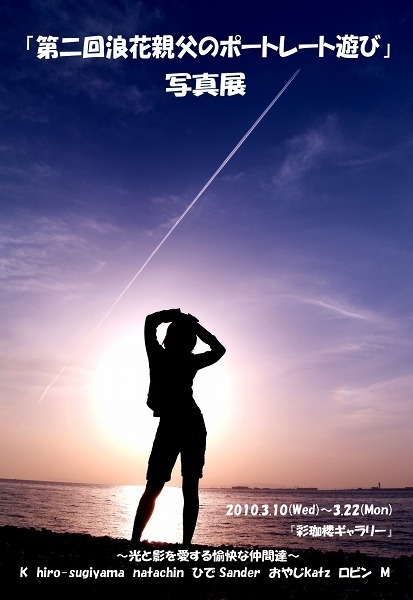 やってまいりました、半年に一度の写真展!! 「第二回浪花親父のポートレート遊び」写真展 関西で活躍中の「光と影を愛する愉快な仲間達」 8人の親父達のポートレート展です。 ■開催期間 2010年3月10日(水)〜3月22日(月)19:00まで ■会場 『彩珈楼ギャラリー』 〒530-0015 大阪市北区中崎西1-6-36 サクラビル117号室 ■電話 090-3842-2187 ■営業時間 カフェ:12:00〜24:00 / ギャラリー:12:00〜19:00 (19:00以降はカフェのお客様は24:00までご覧に