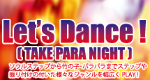 2008年12月からEDGE⇒DOUBLEと開催してきたTAKEPARA-NIGHTもいよいよラストです! Let's Dance!シリーズにふさわしく、松本みつぐ氏をゲストDJに迎えます 【イベント名】Let’s Dance! [TAKE PARA NIGHT] 〜FINAL〜 【日時】3月12日(金) *第二金曜日です!お間違いなく 【時間】19:00-25:00 【料金】男性3000円(2D)/女性2500円(2D) *「てっちゃんのゲスト」で500円OFF♪ 【DJ】JIN(Let’s Dance!・元東亜会館GREECE・根岸倶楽部他) 松本みつぐ(ゲストDJ)/KENTAROU(CLUB DOUBLE ) 【
