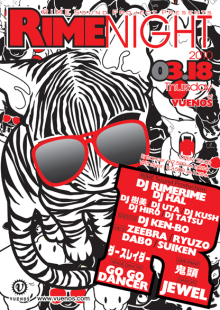 告知失礼致します。 日本を代表するアーティストが多数出演するRIME NIGHTが 今回もスペシャルなメンツを揃えて開催!! 圧巻のライブとトップアーティストによるマイクリレーは必見!! 今回はDJ KEN-BOをゲストに迎え、BIG PARTYは更にボリュームUP! 3/17はZeebra「Butterfly City Feat. RYOtheSKYWALKER,Mummy-D & DOUBLE」発売日ということもあり、何か起こりそうな予感が、、、 他では見れない内容ですので、この機会をお見逃しなく! また、メッセージいただければディスカウントゲストおとりします! メッセージでのや