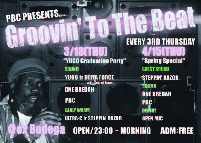 今回は昨年8月のイベント開始以来、レギュラーサウンドとして毎月参加してくれたDelta ForceのYUGOがイギリスに渡る前の最後の 『Groovin' To The Beat』なので、''YUGO Graduation Party