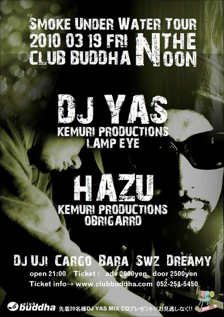 ★前売り先着20名にDJ YASのSMOKE UNDER WATER TOUR オリジナルMIX CD をプレゼント!!!