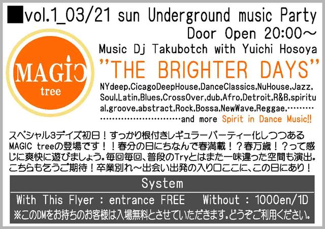 RYTHM&BULES好きはもちろん、聞いていて気持ちのよいGROOVE感のある”より良い音楽”をコンセプトにHOUSE, DANCECLASSIC等、幅広い選曲でオープンからクローズまで、しっかり踊れる