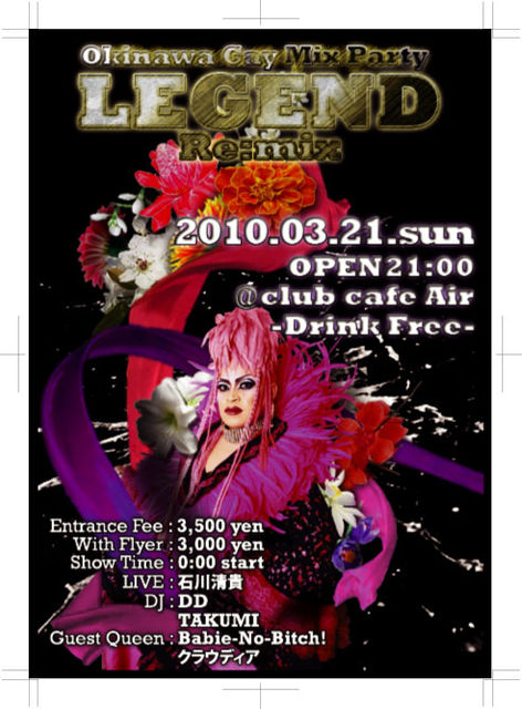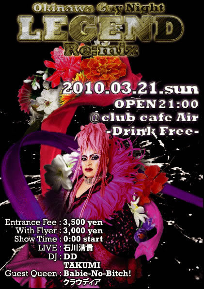 Cover Charge:Mens/1500yen(1D) Ladies/1000yen(1D)