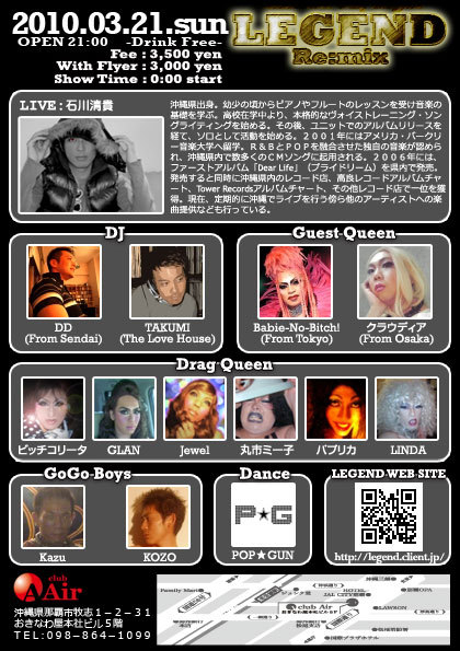 スティッチの挿入歌なのでおなじみ『石川清貴』LIVEなどを入れたいつもと違ったLEGENDお楽しみに3月21日21時〜@CLUB CAFE AIR
