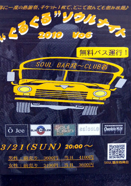 ●年に一度の「ぐるぐる Soul Night」の季節がやってきました。今年は3/21(祝日前の日曜日)に行われます。