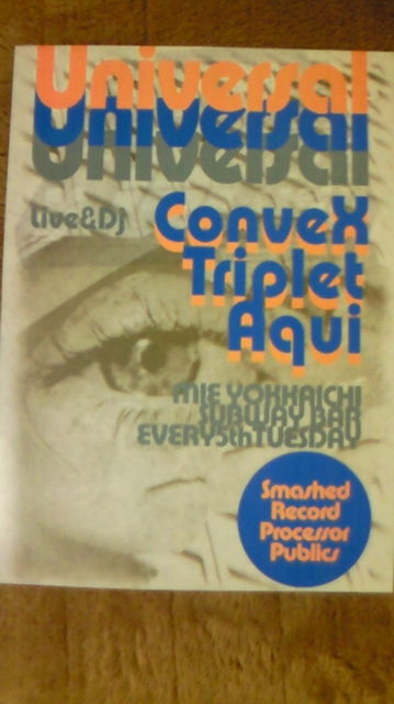 Smashed Record Processor Publicsと言うレーベルを立ち上げたConveX、そしてMy Men、Triplet.Aquiと共に3人のUniversal(普遍的)な音で埋めるEvent。
