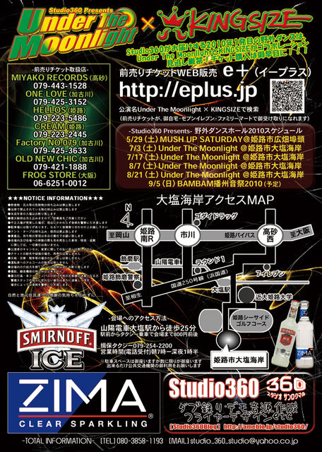 今年もやります!!播州名物・野外ダンス!!一発目から飛ばしていきます!! 去年の4月のお花見ダンスから始まり、9月の的形海水浴場 BIG DANCE までの一連の野外ダンスで お馴染み、毎度お騒がせしております!!Studio 360の野外ダンス・シーズン到来です!! 今年も4月からスタートしていきますが、一発目から熱い夜にしていくのでCheckお願いします!! ☆★☆studio360 presents☆★☆ ♪雨天決行♪ -Under The Moonlight×KING SIZE- @兵庫県・姫路市 大塩海岸 4/28(祝前日・水) 23:00-ALL NIGHT ADV \3000(with1D) A