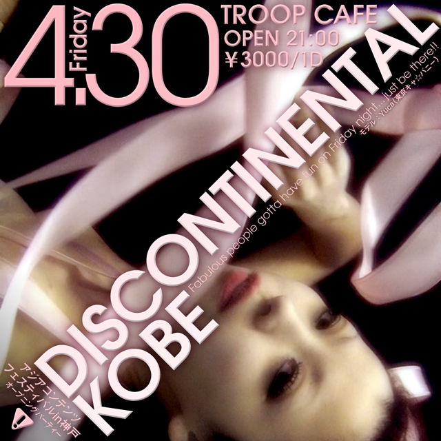 管理人様、告知失礼いたします。 ◆ ジャンル超越破壊力重視!クラブとライブハウスの壁をぶっ壊す!Erectro+Rock+House Music!サウンドとアートとファッションのグランドクロス!トーキョー・クラブシーンで大人気の新世代パーティーDISCONTINENTALが 078クルーと手を組んで!神戸に初登場! ========== " DISCONTINENTAL KOBE 〜アジア・コンテンツ・フェスティバル 2010 オープニングパーティー〜 " 2010/4/30/Fri Open 21:00 troopcafe http://troopcafe.iflyer.jp/venue/home Door:\3,000-1D WF:\2,500-1D =========