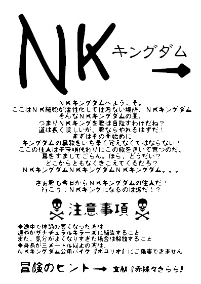 4月28日水曜日! 一学期末総集編! マンスリーワンマン! NKキングダム伝説第四話! 〜この世はでっかいキングダム!そうだ今こそキングダム!〜 OP19:00 ST19:30 $2000円 場所三宮16BIT 是非是非!お越しください!! このキングダムが終わると、実は、次のキングダム(5/26)までライブ予定がありません!!!!このキングダムはつまり、一学期のNK自身の総集編でもあります!!是が非でも!NKキングダムへ!! 右手に笑い!左手に人情! 心にほんとの自由を! NKキングダムへ!!!