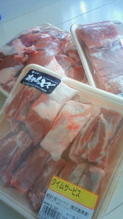 4月1日(木)こぶたカフェ給食は・・・ ------------------------------------------ 【あくしちの 肉食!アマゾネス給食】 ------------------------------------------ 肉食系主婦集まれ!! あくしち、自慢の肉レシピをお蔵出しします。 肉を食って、狩りに出よう!絶対に男を落とす自信あり、のベーコンニンニク醤油チャーハンを皆さんに食べてもらいたくて、チャーハン30人前という無謀なチャレンジ! 一週間熟成させた骨付きスペアリブは、とろっとろの柔らかさです。 さらに食前酒も出しちゃうこぶたらしからぬイ