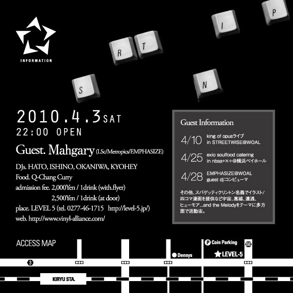 桐生市はLevel5にて行われておりますレギュラーパーティ、「Inspirit」の開催告知です。
