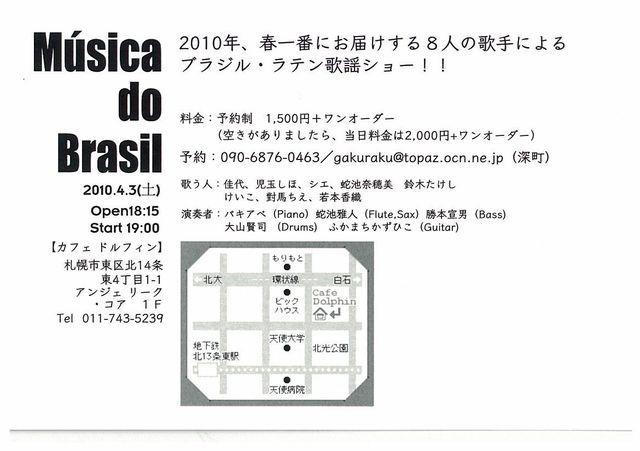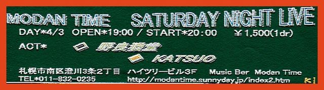open)18:30 start)19:00 前売)1.500yen(+1drink \500)