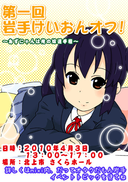 せつそんと申します。 祝☆けいおん!第二期決定! ということで、今回けいおん!にちなんだオフを立てさせていただきます。 けいおんを見て思わずギターを買っちゃった人もいるのではないでしょうか?w でも買ったは良いけどどうすれば… なら、けいおんセッションオフで弾いちゃえばいいじゃない!!! 要綱: けいおん曲によるセッションオフ会になります。 みんなでスタジオに入り、けいおん曲を演奏してみよう!という企画です。 初心者の方も腕に覚えのある方もOKです、もちろんボーカル参加もOK