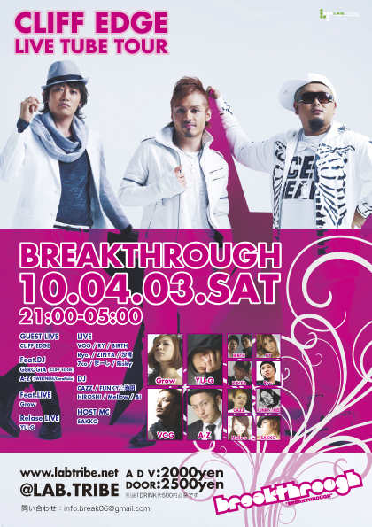 管理人様、トピック失礼致します。 不適切でしたらお手数ですが削除の方お願い致します。 CLIFF EDGE『for you』リリースツアー京都が開催されます リリースツアーならではの スペシャルなシークレットゲスト有り DJ GEORGIAのDJプレイの有り もちろん!! CLIFF EDGEのスペシャルライブもあります 関西圏の皆さんは必見です!! エントランス受付にてmixiを見たと頂ければ ディスカウントプライスでご入場頂けます またとない素晴らしいパーティ