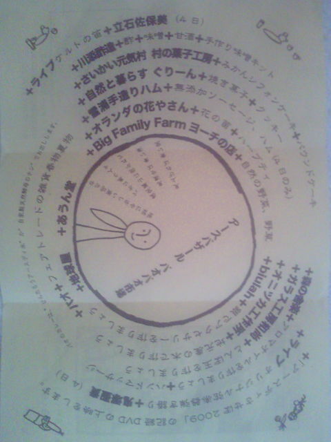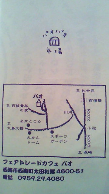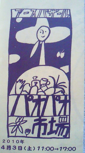 去年、させぼ中央公園で開催されたアースデイが西海町パオであります。 色んな催しごとやライブ、お食事が出来ますよ! 沢山のオーガニック料理やアロマオイル、ガラス工房、アクセサリー などが作れたりもします。 雑貨春物夏物、クッキーやケーキ、無添加ソーセージやハム、 自然の野菜や薬草なども購入できます。 --------------------------------------------------------------------- アースバザール@パオパオ市場 4月3日(土) 11:00〜17:00 4月4日(日) 11:00〜16:00 4日がおもに色んなライブ