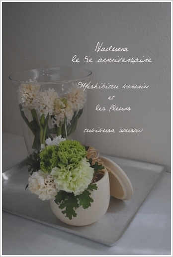 管理人さん、お邪魔します。 告知させてください。 「陶屋なづな」5周年プレイベントとして、 ”めしびつころりんに春のお花でプチブーケ& 花枝のアレンジを活けましょう” 月草sousow 西山ゆい子先生のお花のワークショップを開催します。 ■日時:4月3日(土)10:30〜 (所要時間 約2時間) ■場所:陶屋なづなLIVINGで ■費用:7.500 円 (飯櫃ころりん+花+レッスン料込み) ■持ち物:花ハサミ、エプロン(任意)、筆記用具 ■募集人数: クリーム色ころりん先着5名様 黒ころりん先着3名様 です。 ■講師:月